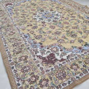 روفرشی۶متری با ابعاد حدودی ۲ در ۳ مخمل زرکدار طرح نایینی ؛ جنس: مخمل زرکدار ( سطح روفرشی براق است)