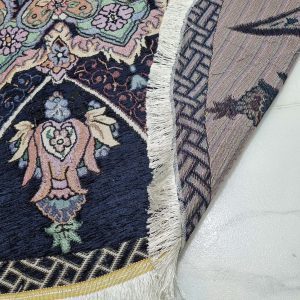 روفرشی دایره ای ۲*۲ مخمل زرکدار طرح خورشید ؛  جنس: مخمل زرکدار ( سطح روفرشی براق است) یکرو ریشه دوزی