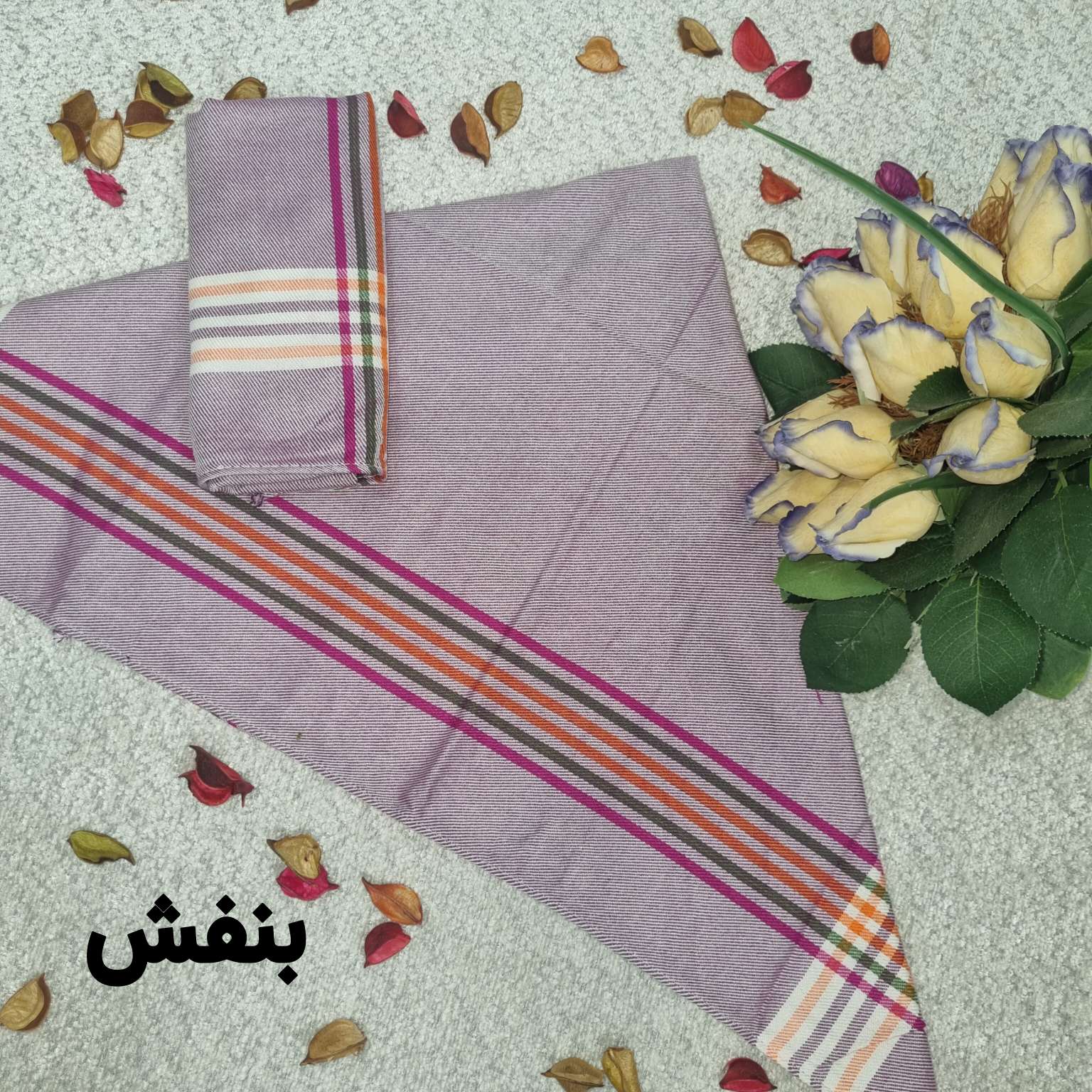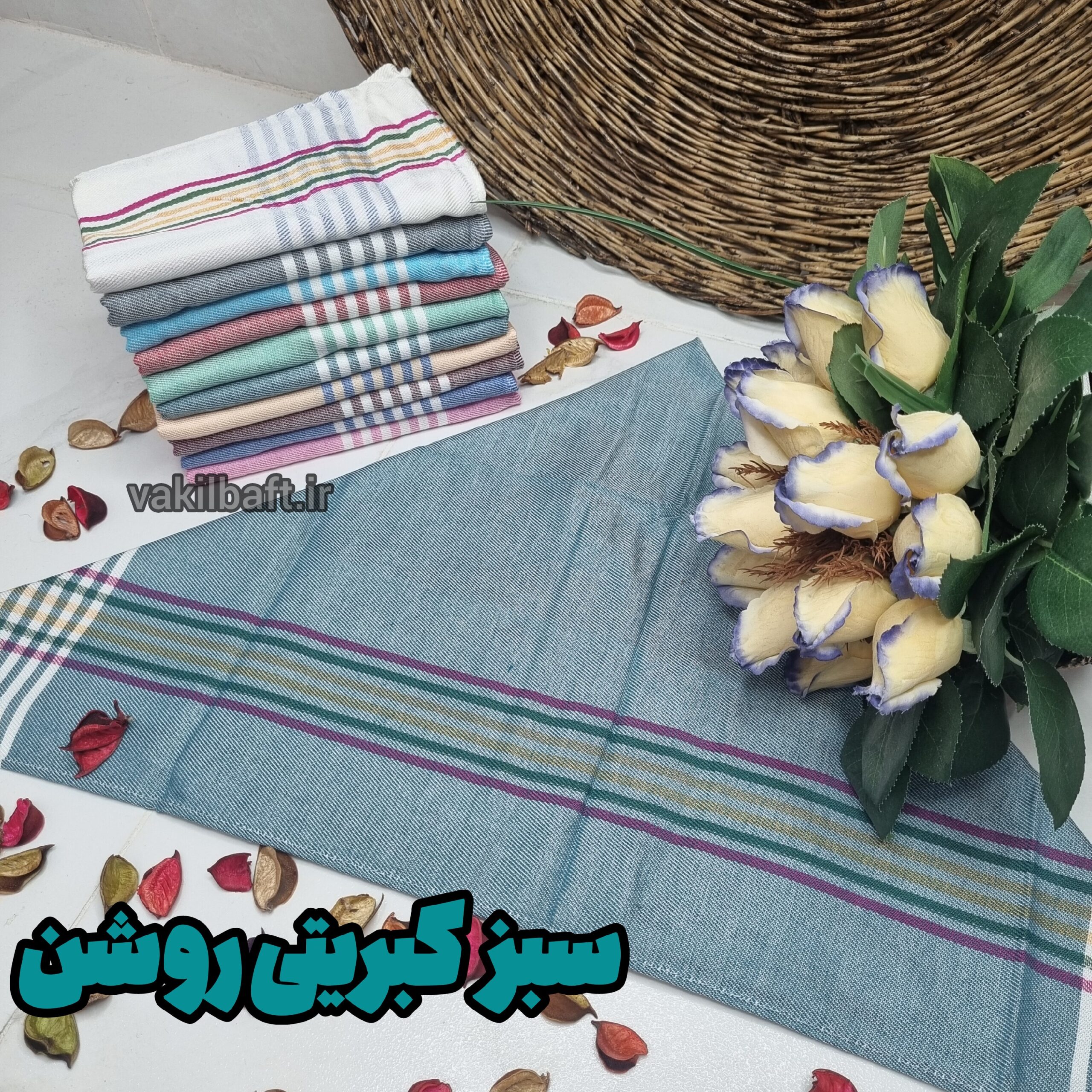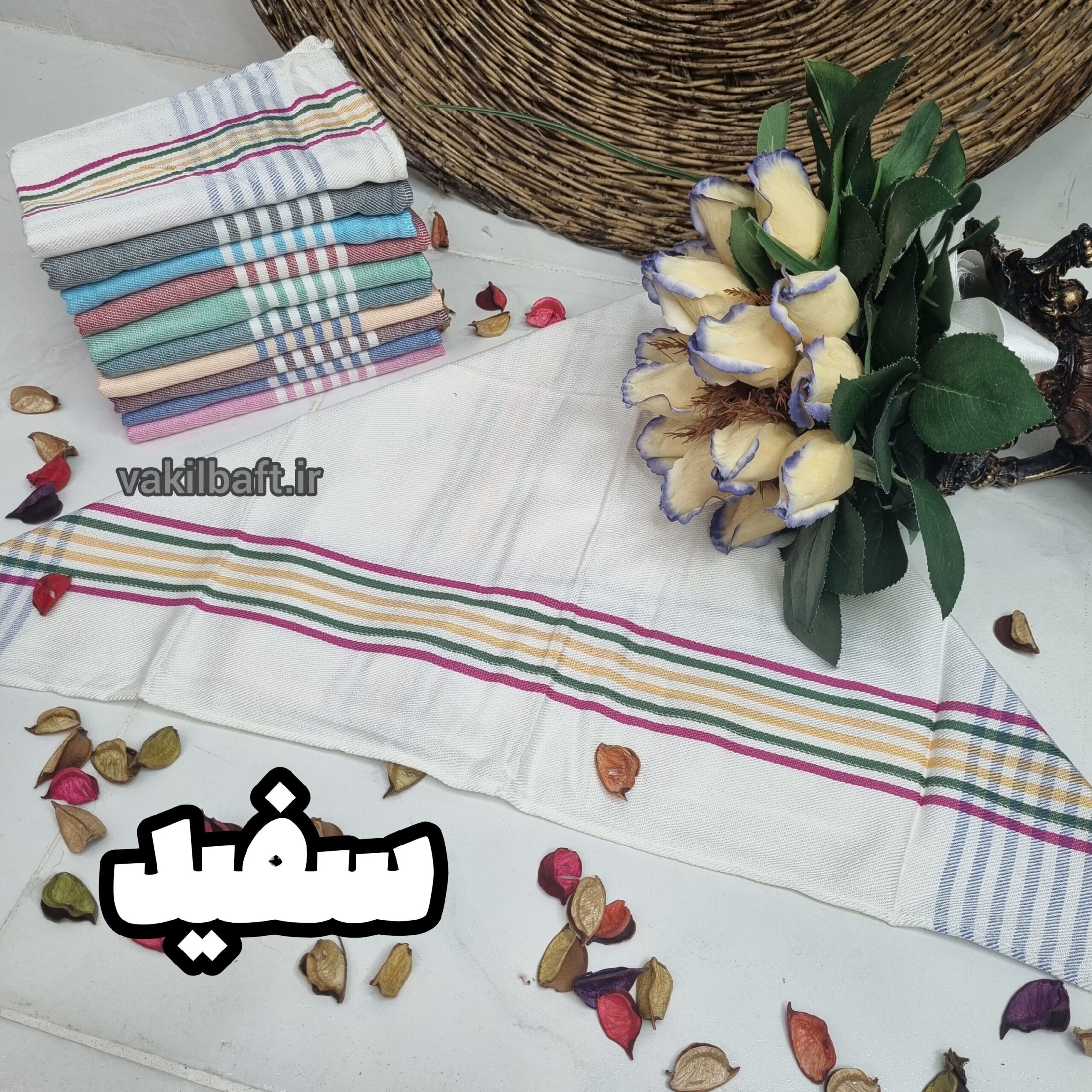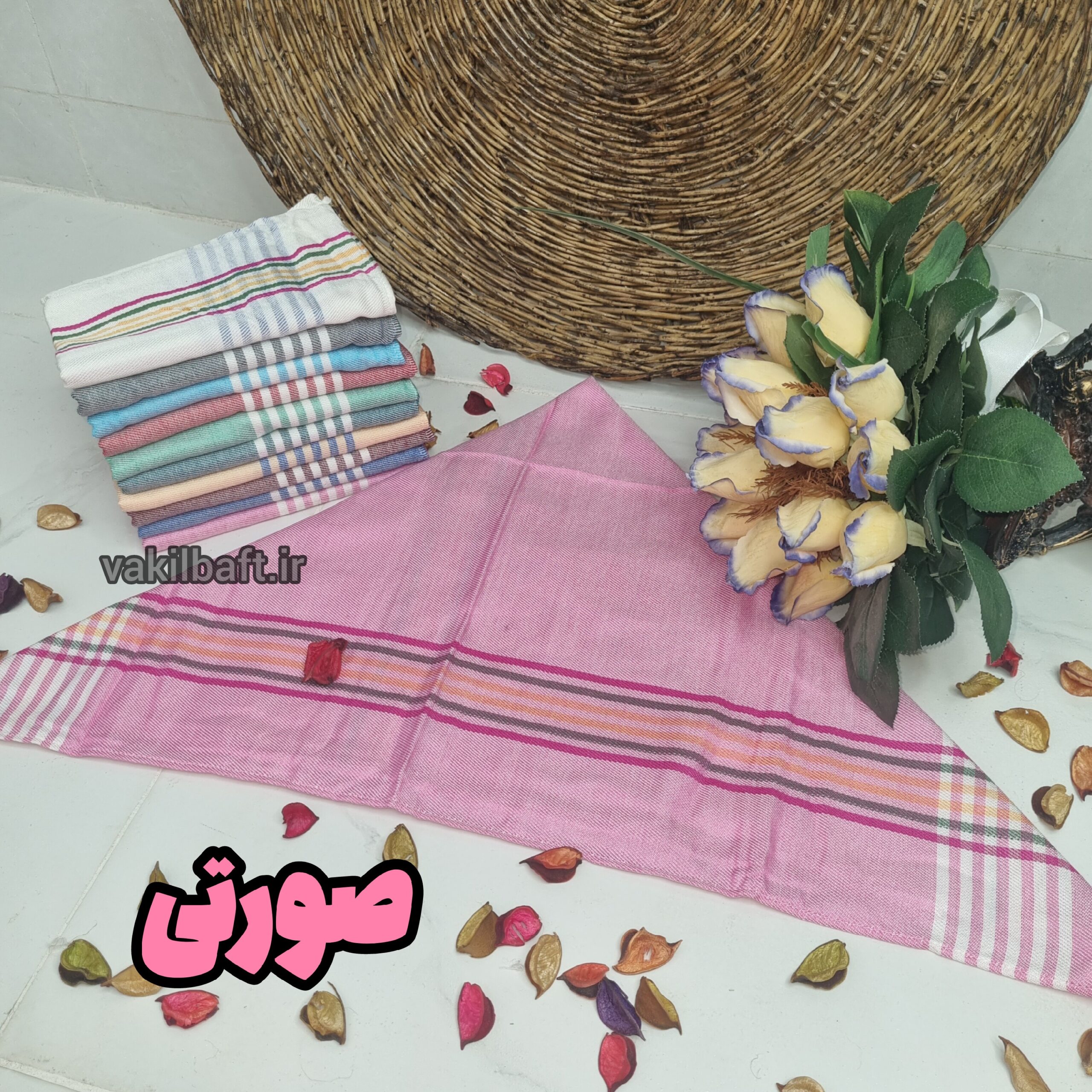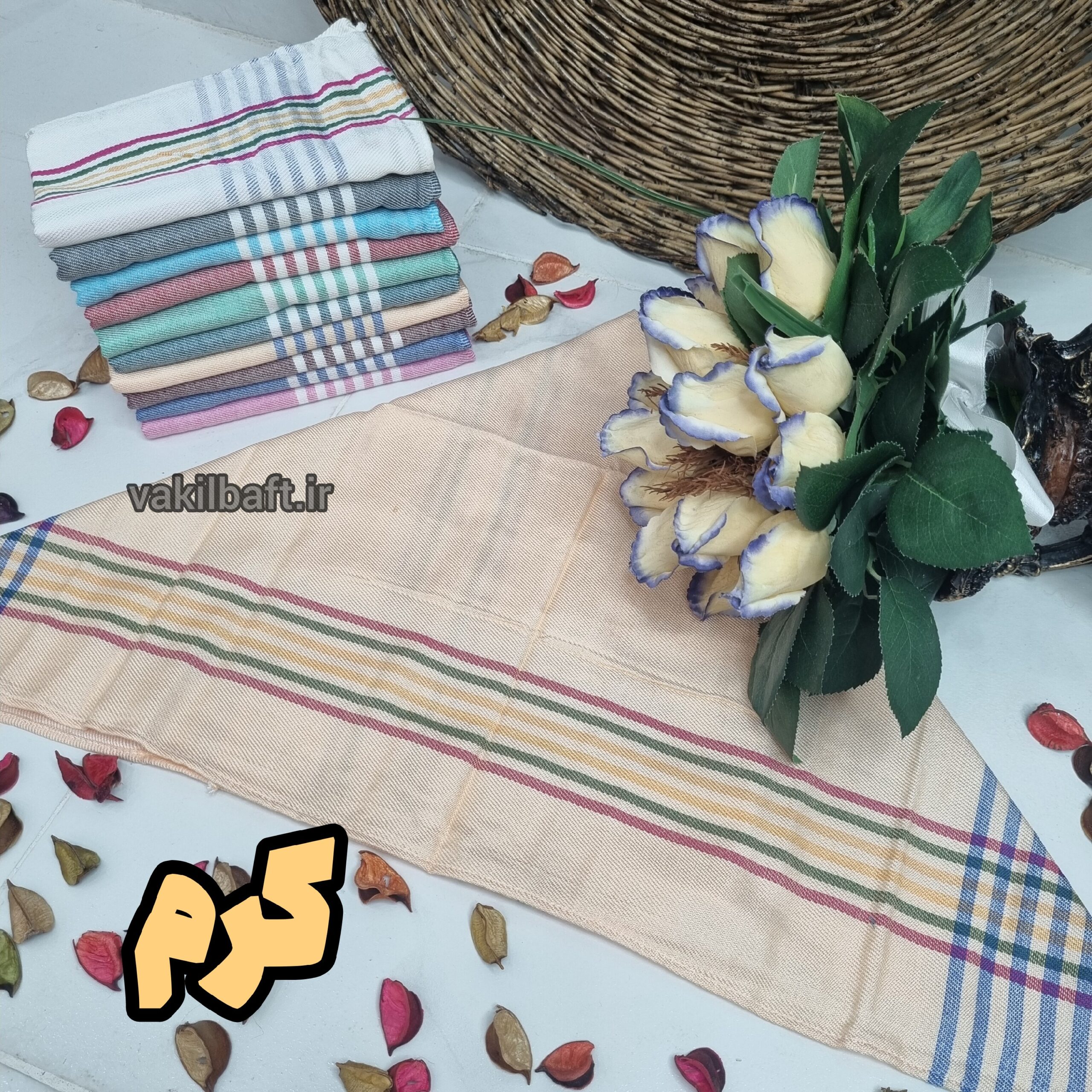 اندازه های حدودی دستمال: ۵۰ در ۷۰ ( بدون در نظر گرفتن آبرفت)