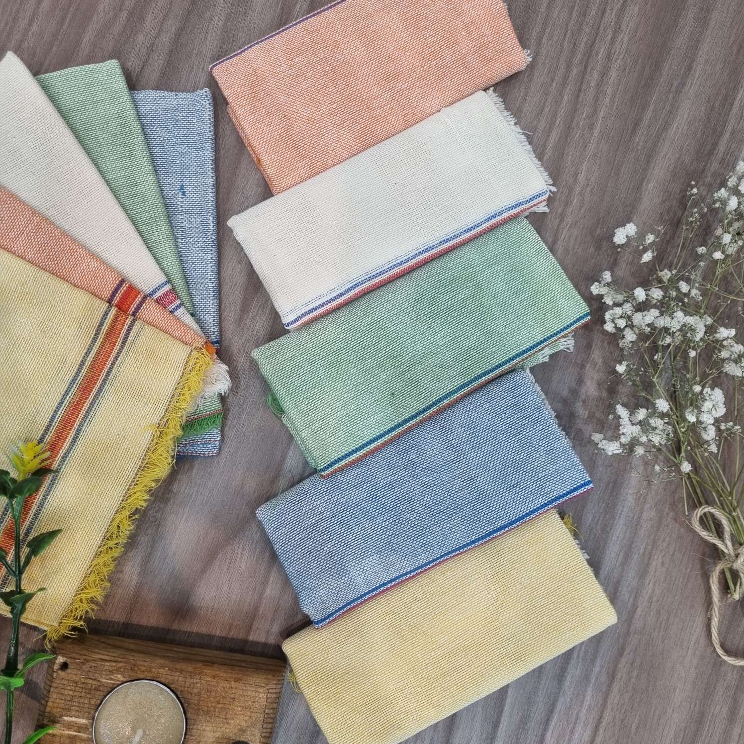 حوله دست یا دستمال خشک کن ۵۰ در ۷۰ دورحاشیه با رنگبندی بسته ۲ تایی