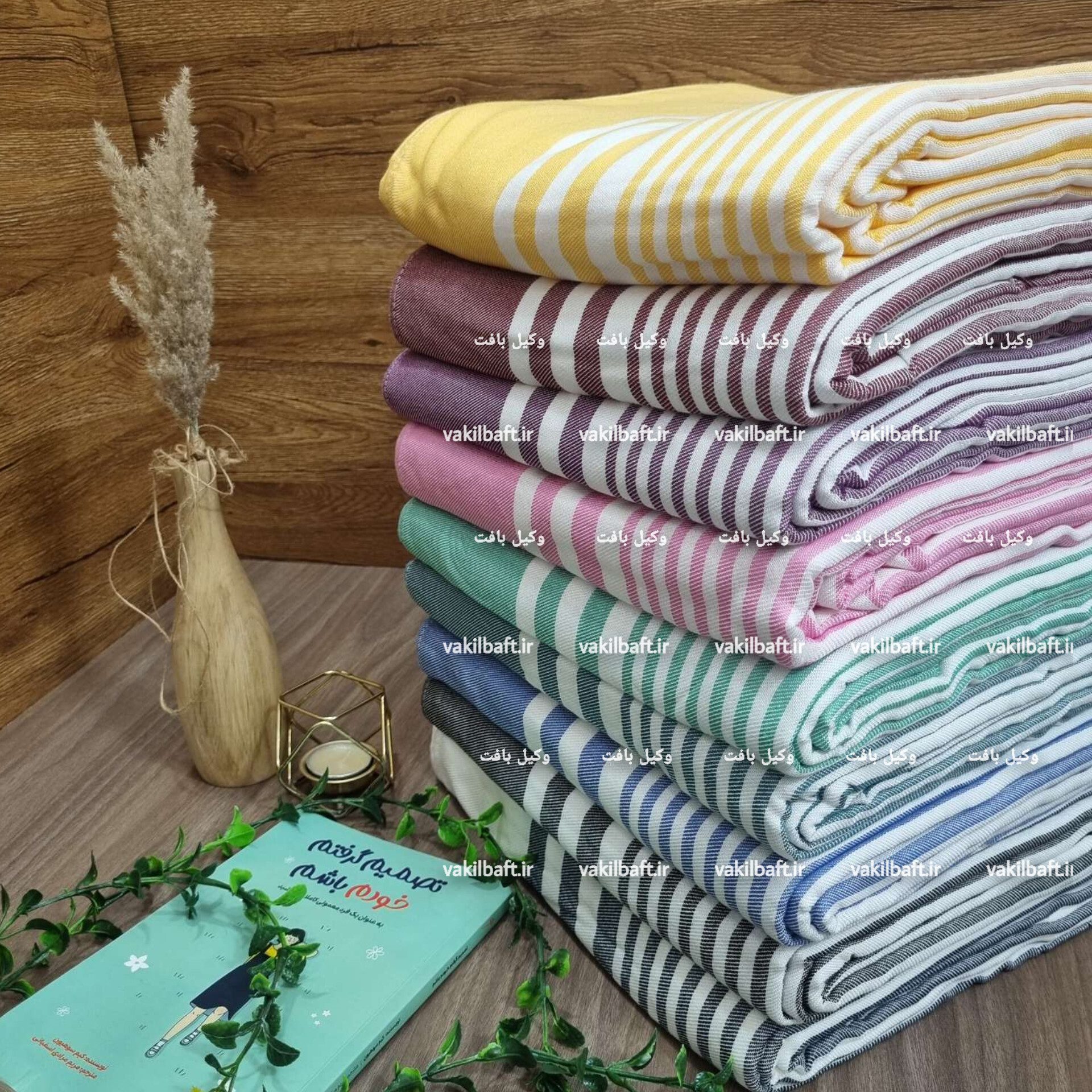 حوله دست یا دستمال تنظیف ۵۰ در ۷۰ خطی با رنگبندی بسته ۲ تایی