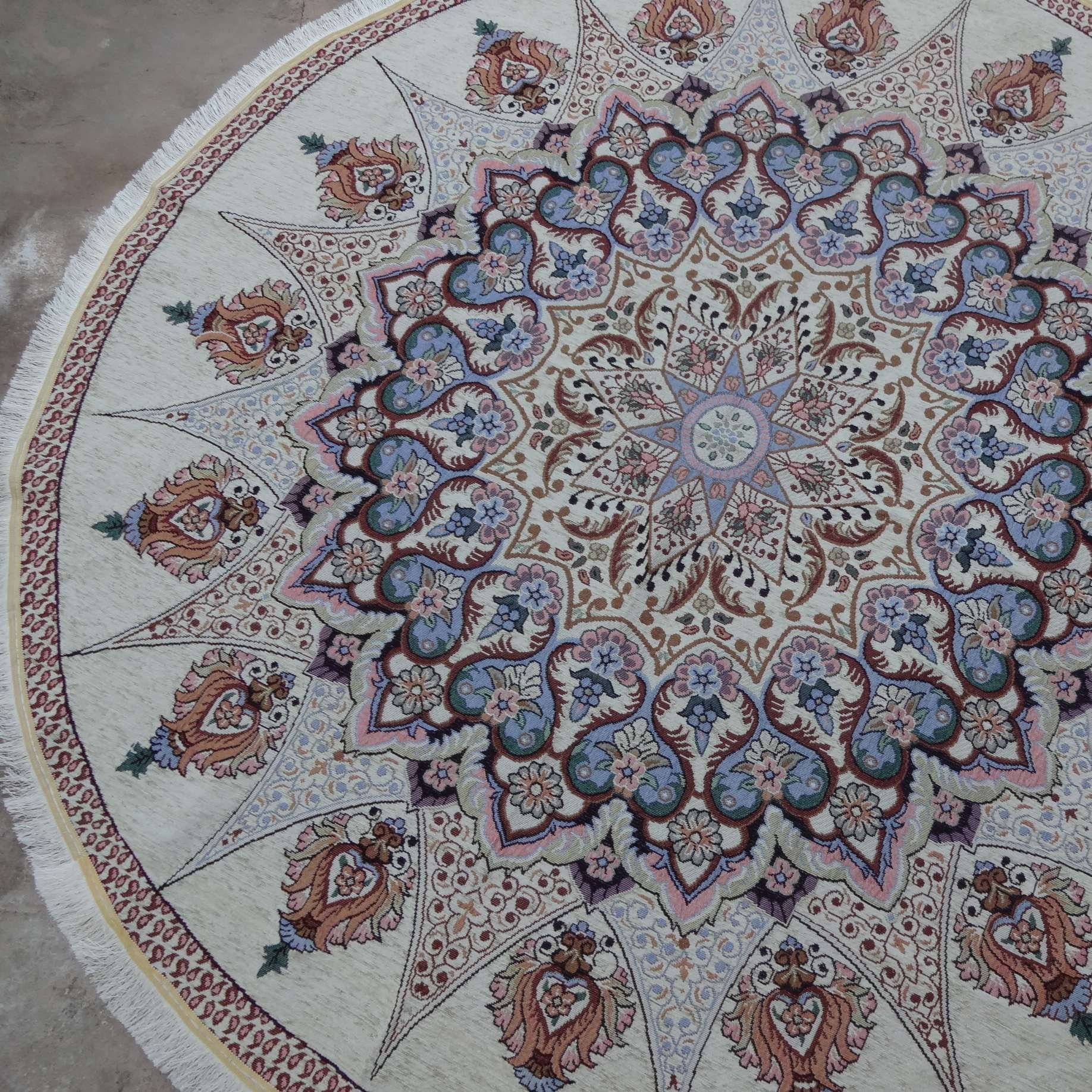 روفرشی گرد قطر ۲ متر رنگ کرم طرح خورشید