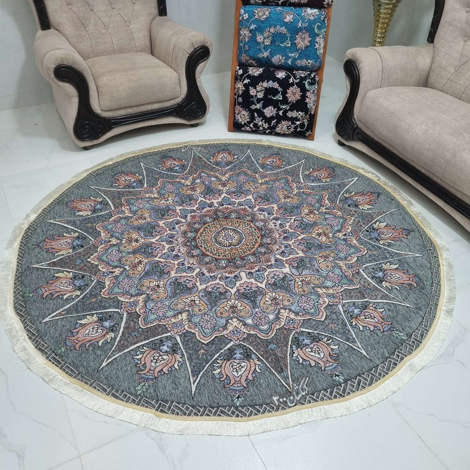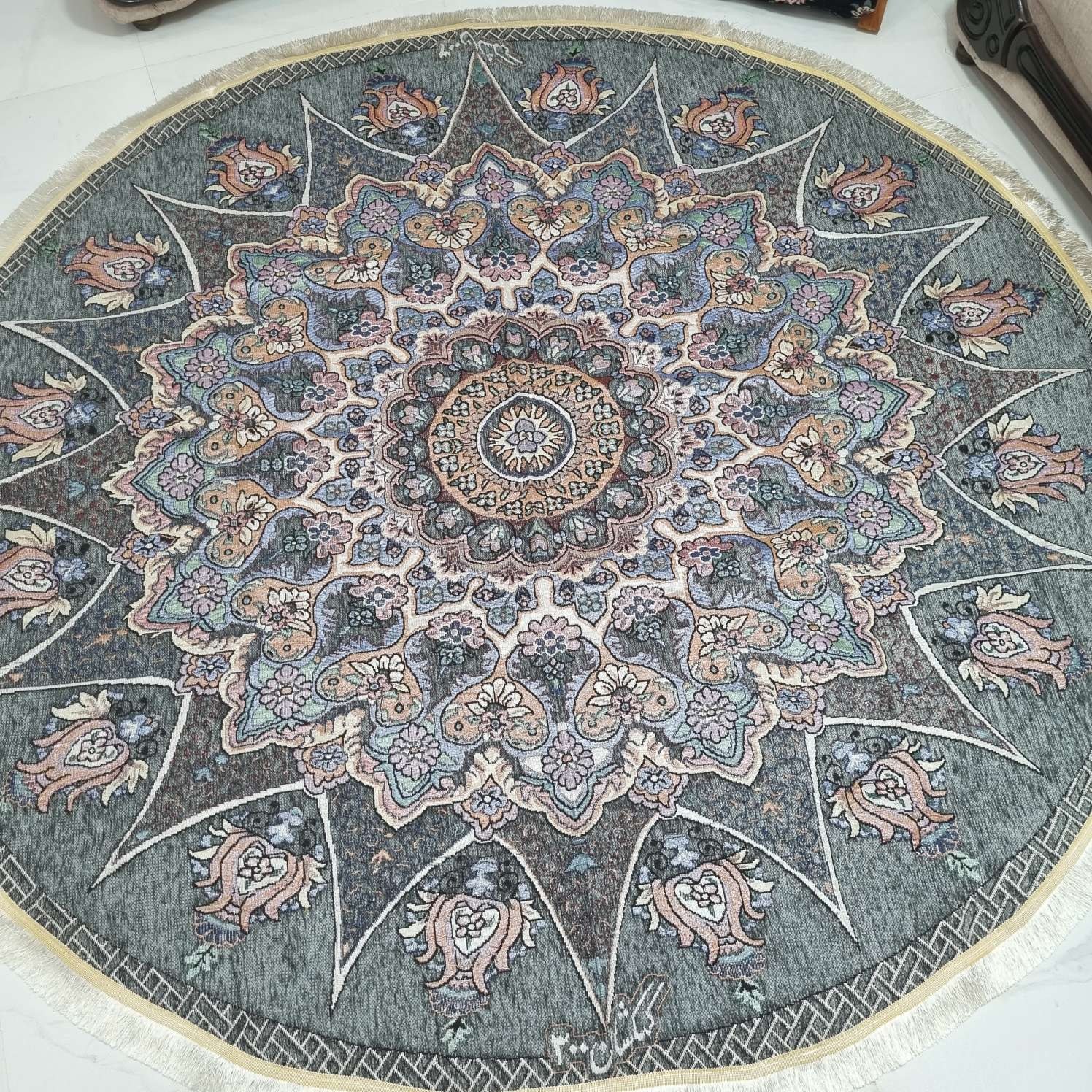روفرشی گرد قطر ۲ متر رنگ طوسی طرح خورشید