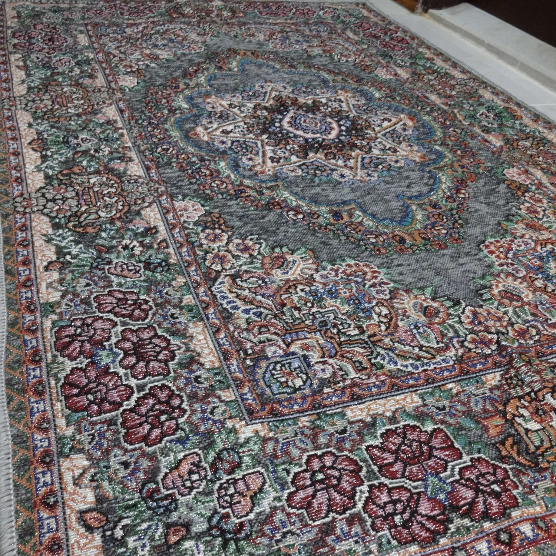 روفرشی۱/۵متری با ابعاد حدودی ۱.۵*۱ مخمل زرکدار طرح حوض نقره تولید یزد ؛