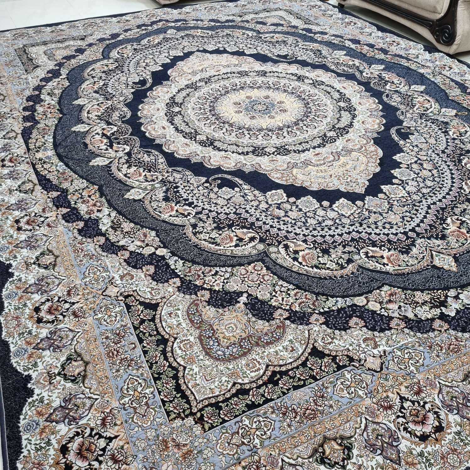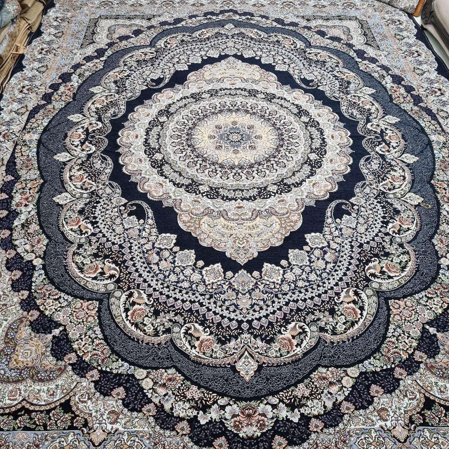 جنس: شانل ابریشم ( ظرافت نقش و طرح بسیار بالا و طرح فرش)
