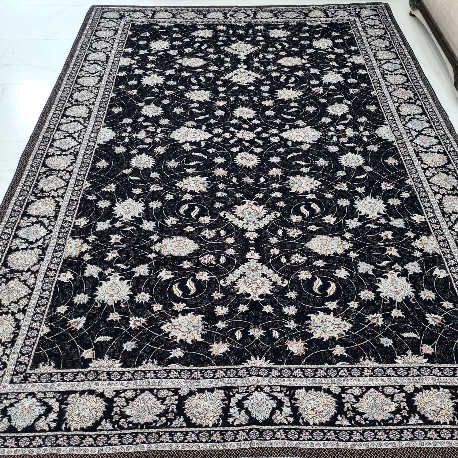 روفرشی ۱۲ متری با ابعاد حدودی ۳ در ۴ مخمل شانل ابریشم طرح افشان کد گلنگار ۱۰۰ ؛