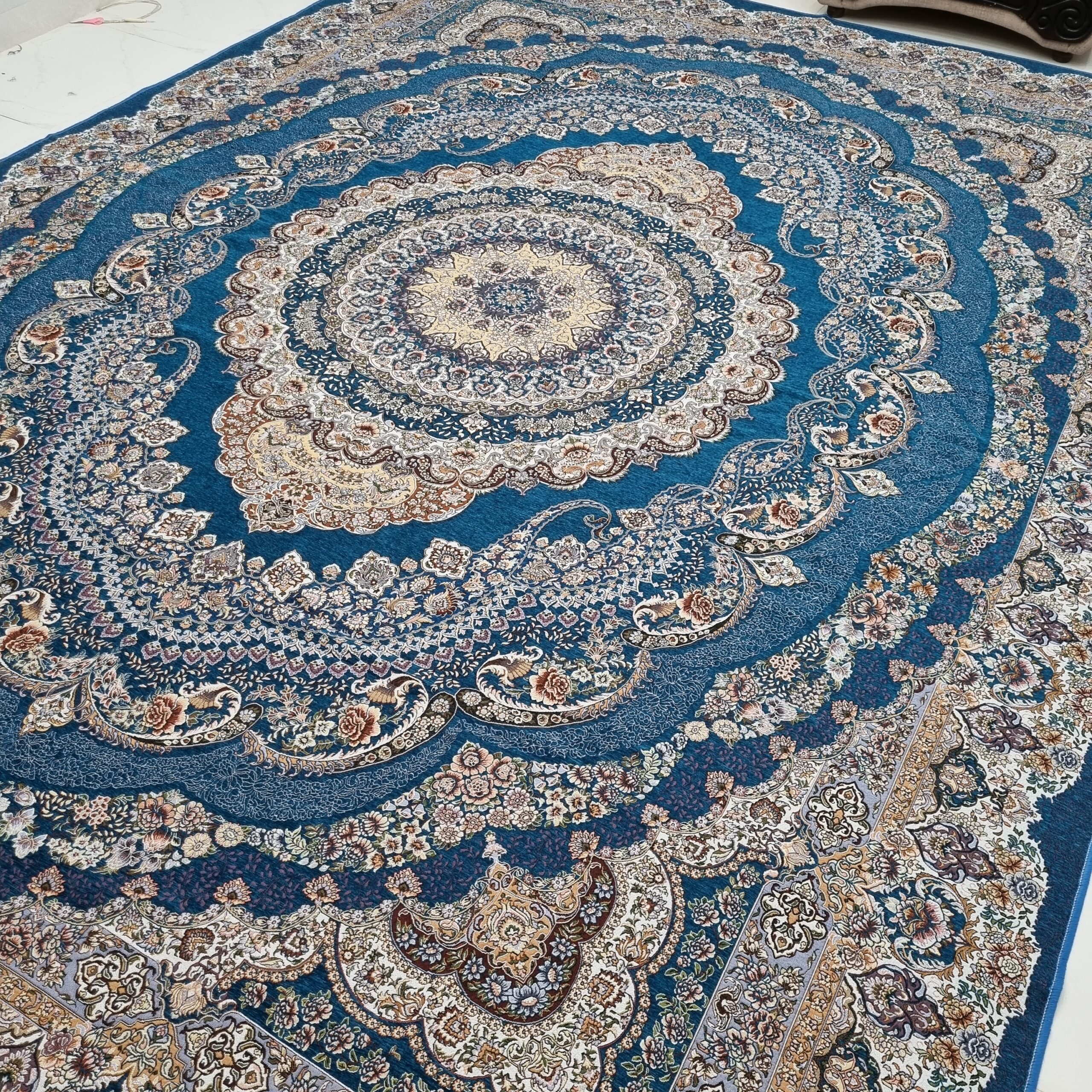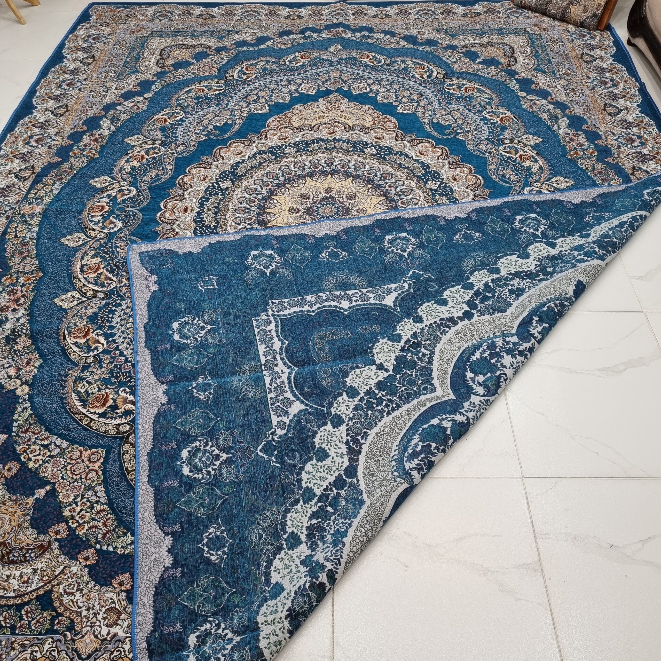 جنس: شانل ابریشم ( ظرافت نقش و طرح بسیار بالا و طرح فرش)