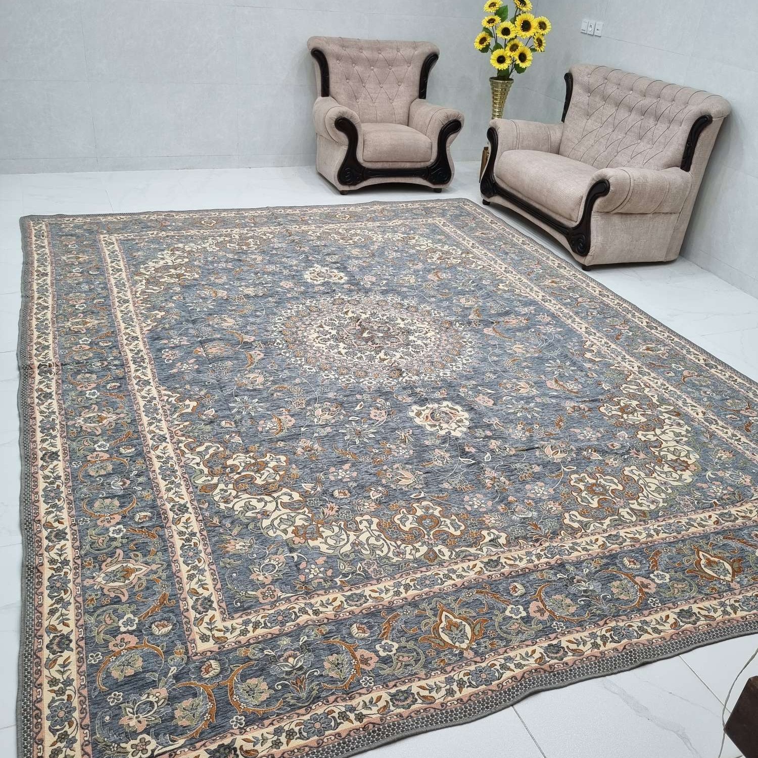 روفرشی تراکم بالا و ضخیم با ابعاد حدودی ۳۰۰ در ۳۹۰، مخمل دورو طرح سپیده ؛ جنس: مخمل دورو (۲رو) وزن: حدودا ۶۷۰۰ گرم (ضخیم) یک روفرشی مخمل نرم است یک طرف آن زمینه طوسی است با مخملی بیشتر و طرف دیگر زمینه کرم است و غیر مخملی ❌عکس از هر دو طرف در تصاویر هست❌ این طرح دارای تنوع رنگ و سایز است که در قالب محصولات مجزا تعریف شده است. برای دیدن تنوع رنگ ها و سایزها ، کلمه ” سپیده ” را جستجو کنید ❌سایزهای مختلف این طرح: از لحاظ رنگ با یکدیگر کمی متفاوتند❌