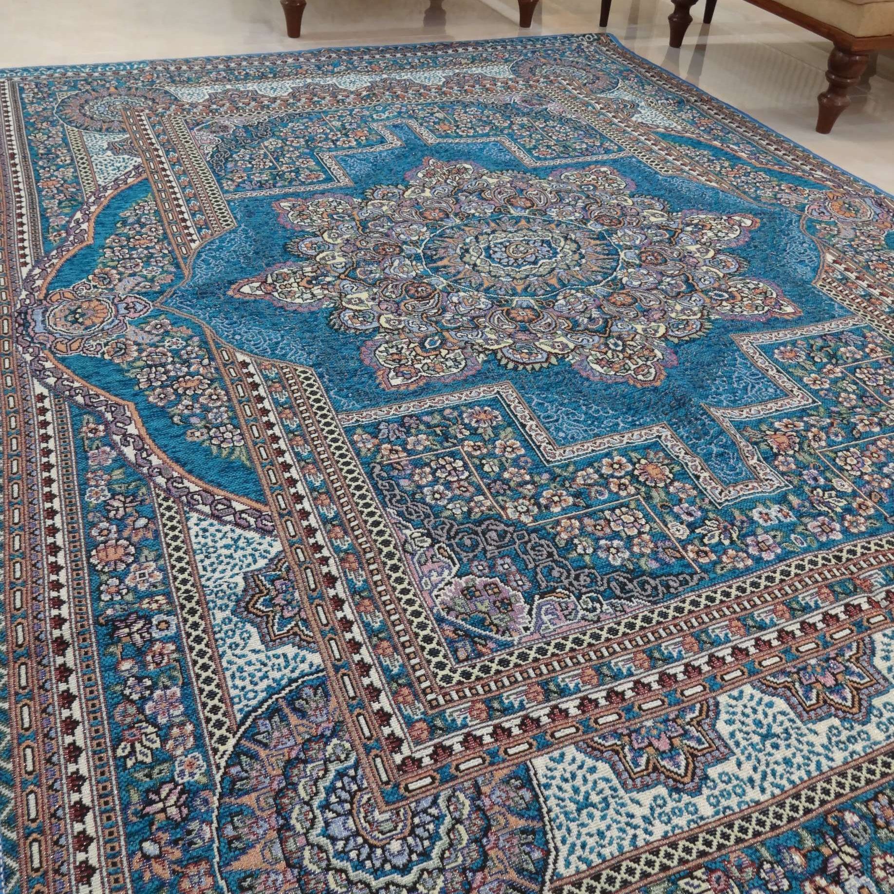 روفرشی ۳ متری رنگ آبی فیروزه طرح باغ بهشت