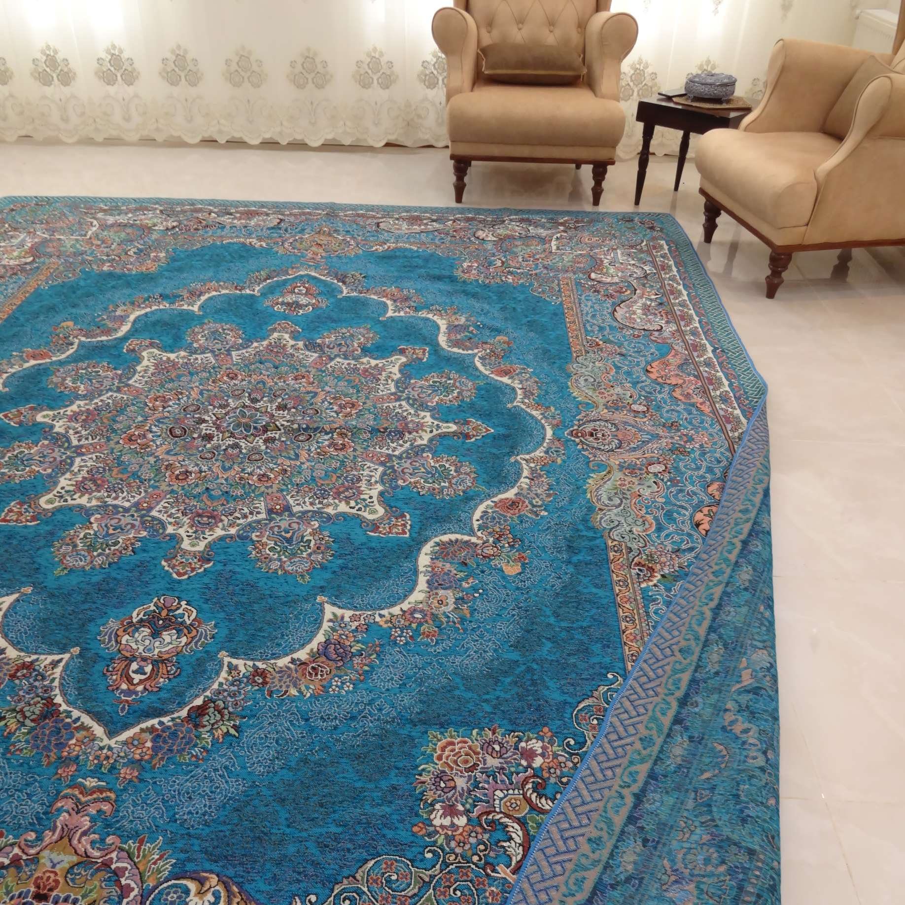 روفرشی ۱۲ متری رنگ آبی فیروزه طرح دیبا متوسط