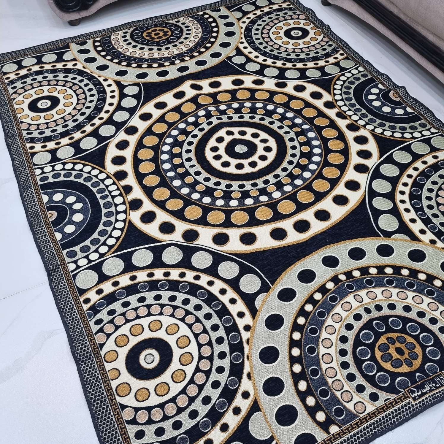 روفرشی تراکم بالا و ضخیم ۱/۵ در ۲ مخمل دورو طرح توپی قابل استفاده هم به عنوان زیرسفره و هم روفرشی ؛